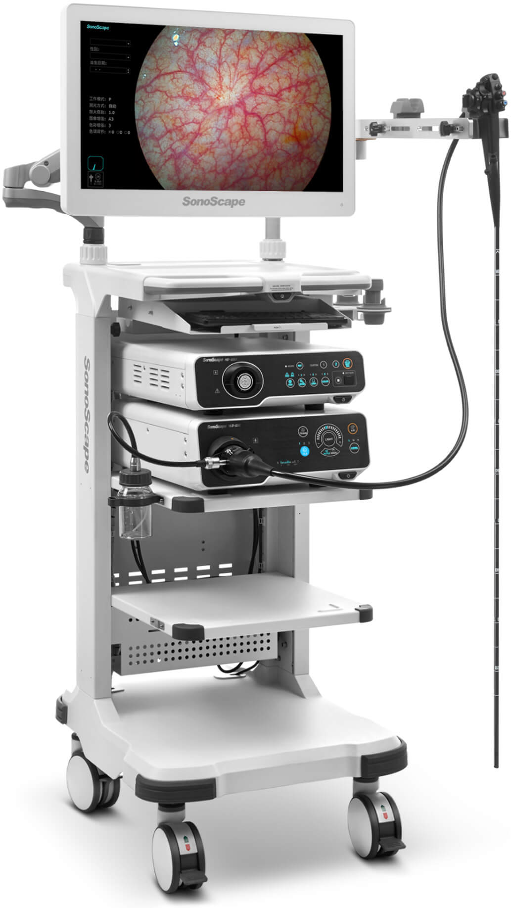 550系列的消化内镜,全新设计的一键式内窥镜连接器,简化了内镜检查前后的设备连接及拆卸工作。